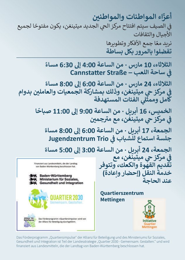 Wer sich in dieser Bürgerinitiative für das neue Quartierszentrum engagieren möchte, darf gerne eine E-Mail senden an initiative_quartier@ba-mbw.de