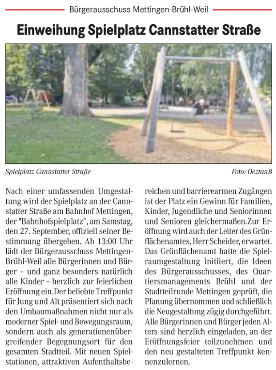 2. Oktober 2024 – Neuer Schaukasten am Neckarcenter