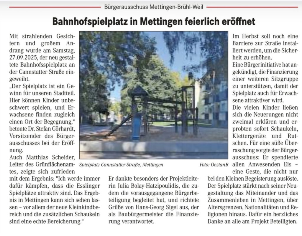 Bereits zum zweiten Mal lud der Bürgerausschuss Mettingen-Brühl-Weil zum Bürgerdialog unter dem Motto „Wo drückt der Schuh?“ auf den Hermann-Sohn-Platz ein – und erneut wurde das Format sehr gut angenommen. Mehr als 20 engagierte Bürgerinnen und Bürger kamen am Samstag zusammen, um über die Herausforderungen und Wünsche für ihren Stadtteil zu sprechen.